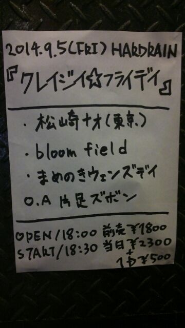 今日はけっこうかぶっていたのですが、前回のbloom field企画でこの日のことが告知されました。そうなると彼らも残り少ないし、まめのきも出るんだし、ということでやっぱりここしかなくなってしまうんだよね。続きを読む