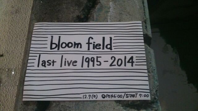 2年半前イベントに出ていただいた平松永吉さんのバンド、bloom fieldが本日をもって解散するそうで。いろんな思いもあって行くべきかどうかちょっと迷っていたのですが、やっぱり最後の姿をしっかり見ておきたくてFANDANGOまで足を運ぶことにしたのでした。