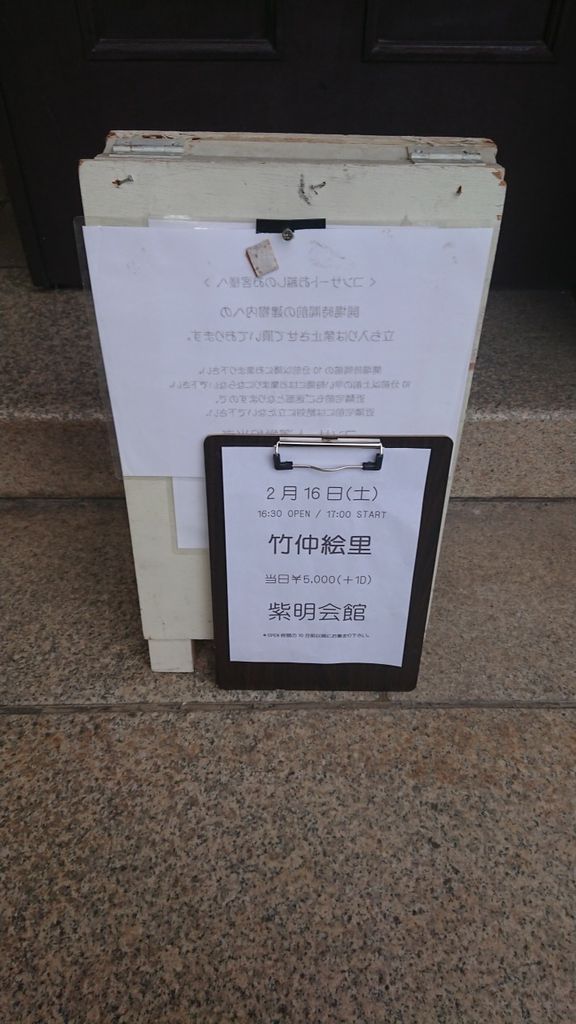 絵里さんひさしぶりの関西ライブ、5年くらい来てなかったみたいです。そんなライブならもちろん行くよねというわけで紫明会館までやってまいりました。