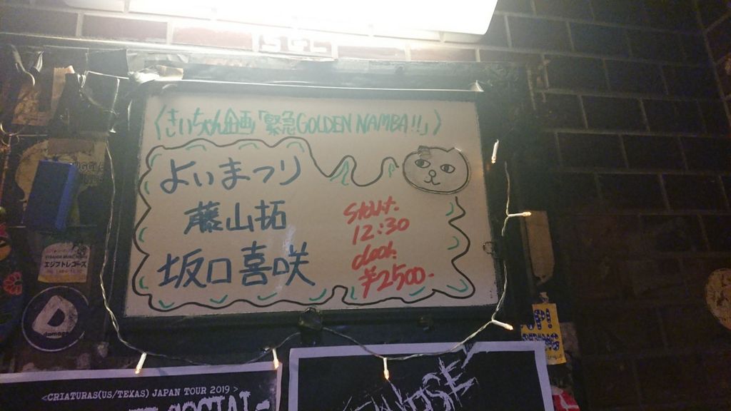 昨日だったかな、偶然スケジュールを見たら坂口喜咲が大阪でライブをするらしくって。あの時点で気かなければおそら知らないまま終わってたろうし、状況的にもこれは行っとくしかないと思いBEARSにやってまいりました。ってかここ来たのはじめてだわ、こんな南にあると思ってなかったもん。