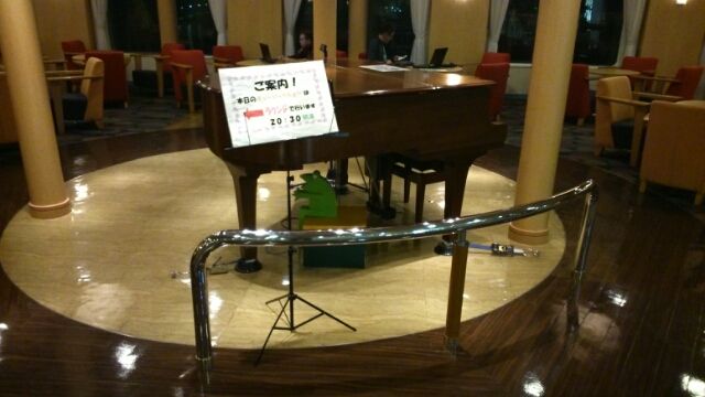 ロビーにはピアノがあり、かなり豪華な雰囲気でした。電源が使えるビジネスコーナーもあります。