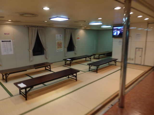 2等指定席です。一般的なカーペットフロアになっております。ちなみにこの日は遠征に向かう学生さんやお遍路帰りの方々でいっぱいでした。