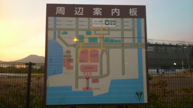 小倉北港から連絡バスもありますし、小倉駅までも歩いて15分ほどです。右に曲がってすぐ次の道を右に入るとペデストリアンデッキがありますので、それをのぼれば案内があります。