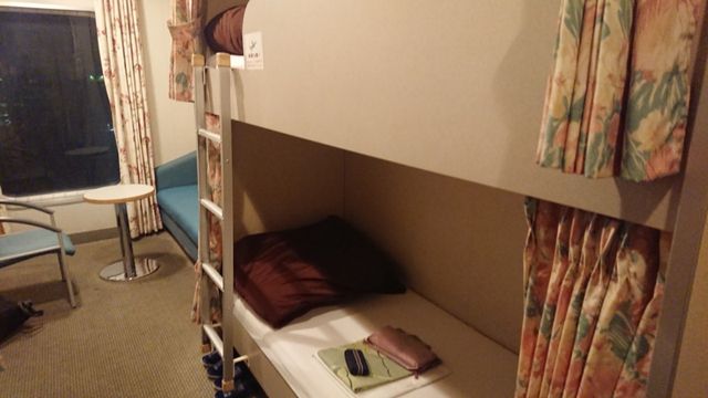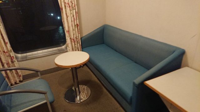 (2018/11/14追記)機会があり1等客室にも乗ることができたのでそちらの写真を。4人定員ですが、このときは平日だったこともあり貸切状態でした。上等客室に大阪から乗るのははじめてで、右舷側の客室から見る神戸の夜景がとてもきれいでした。