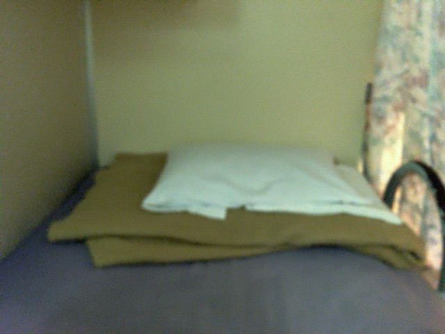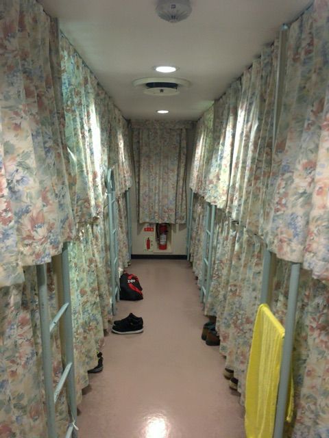 今回利用したのは2等寝台です。12人定員なので普段より奥行きがあってちょっと新鮮でした。コンセントは電灯の下にあります。