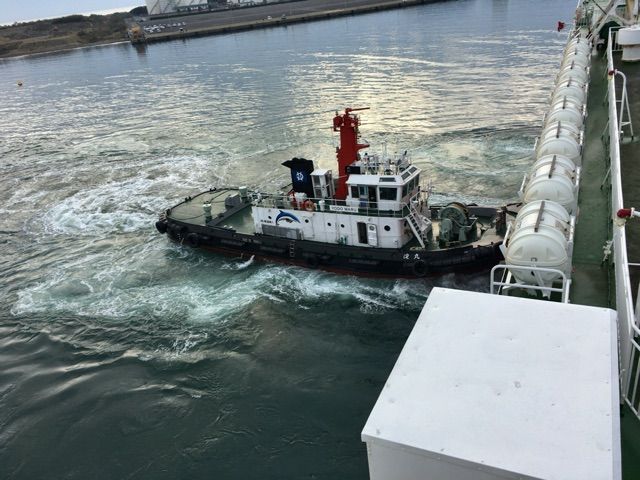 そうこうしているうちに宮崎港に到着しました。宮崎港ではタグボートによって港へ押しておりました。