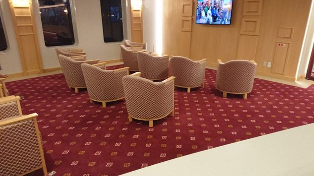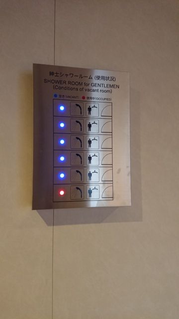 おふろももちろんあり、今回シャワールームもできました。おふろについてはサウナがなくなってしまい湯船の広さは変わっていませんが、洗い場の数が14個と倍増しており混んでいても洗い場待ちをすることは少なくなりそうです。(11/14追記:オレンジフェリーのサイトには12個と書いていました。でもおれんじ7の洗い場が6個だったので倍増は間違いなかったです。...すみません。もういちど確認しますが、洗い場内のシャワールーム2つが入ってないんだろうか)