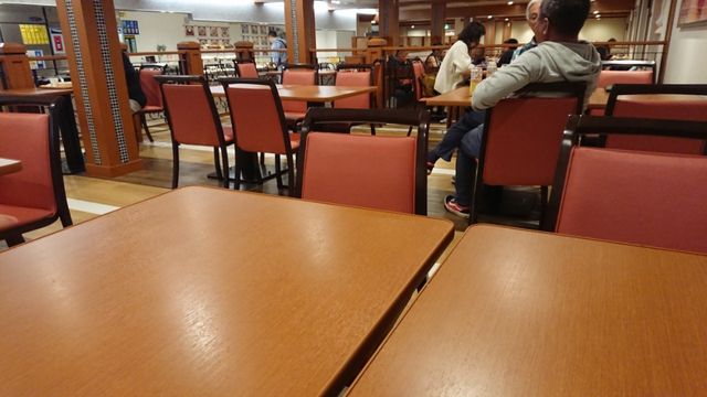 食堂です。席数も多くなりました。カフェテリア方式で、いままで同様たくさんのメニューがあります。お酒もかなりの種類がありました。