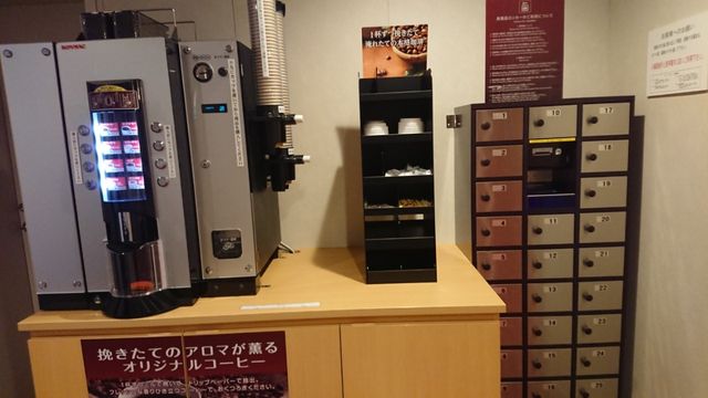 新たにコーヒーメーカーと貴重品ロッカーが設置されています。個人的にこれまですっとフロントでの貴重品預かりを行っていたので、このロッカーは助かります。そう、これらと自販機が設置された代わりに売店がなくなりました。あと給茶機もなくなっており、これはちょっと残念です。